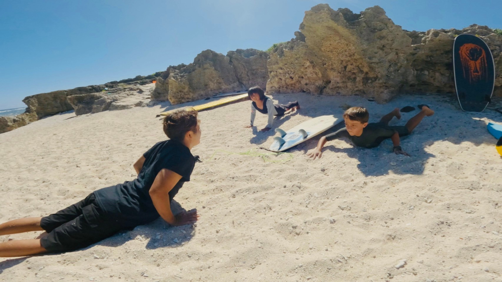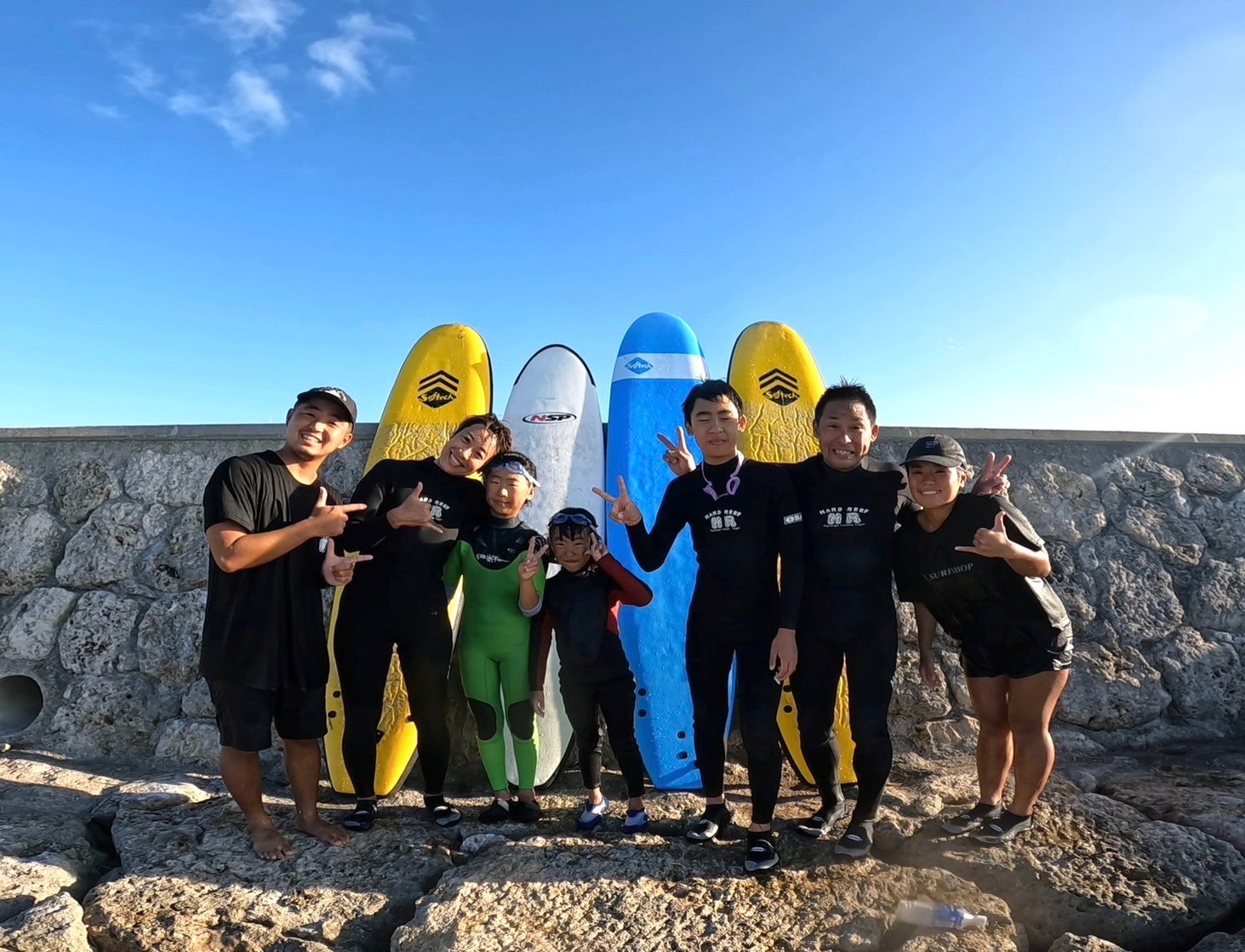 ハードリーフサーフショップの学生向けサーフィンスクールはインストラクターが1人ではなく2~4人体制でレッスンを行います。なので、小さなお子様でもより安全にサーフィンを楽しく体験してもらうのをテーマに行っております。